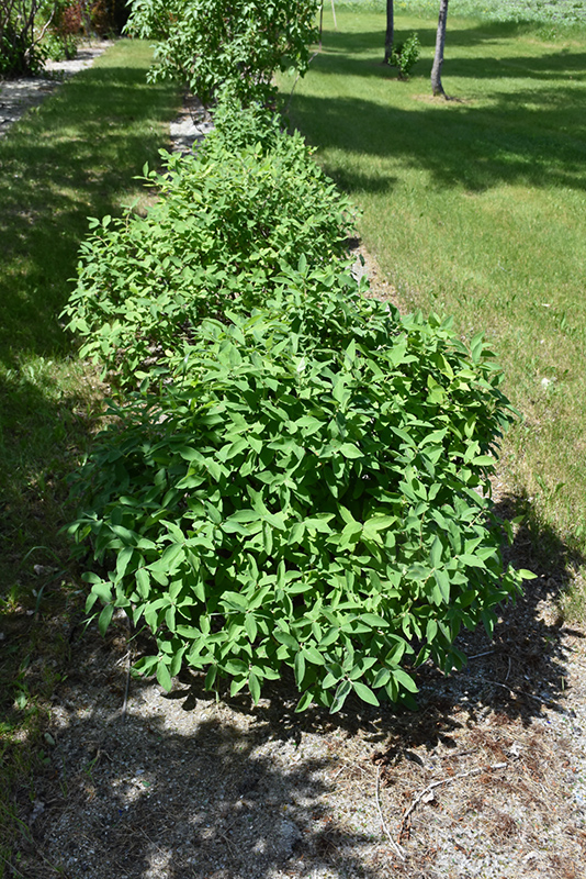 Tundra Honeyberry will grow to be about 4 feet tall at maturity, with a spread of 4 feet. It tends to fill out right to the ground and therefore doesn't necessarily require facer plants in front. It grows at a medium rate, and under ideal conditions can be expected to live for approximately 20 years. While it is considered to be somewhat self-pollinating, it tends to set heavier quantities of fruit with a different variety of the same species growing nearby.