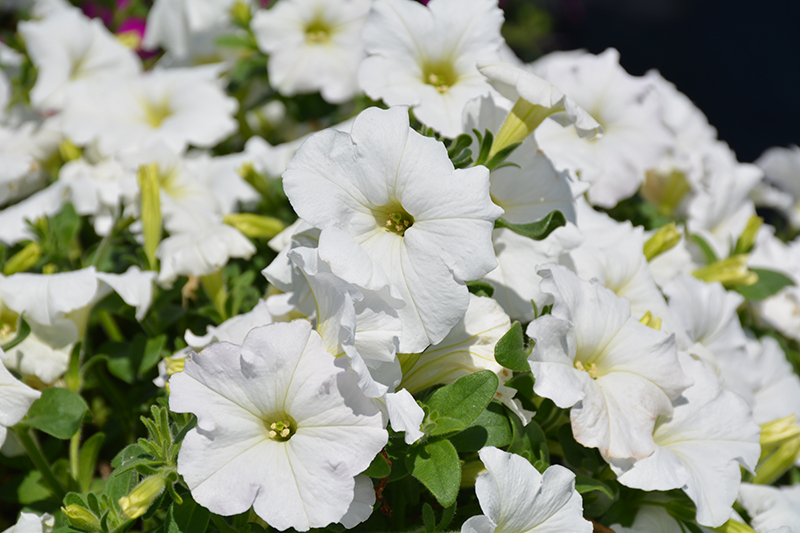 Easy Wave® White Petunia is a fine choice for the garden, but it is also a good selection for planting in outdoor containers and hanging baskets. Because of its trailing habit of growth, it is ideally suited for use as a 'spiller' in the 'spiller-thriller-filler' container combination; plant it near the edges where it can spill gracefully over the pot. Note that when growing plants in outdoor containers and baskets, they may require more frequent waterings than they would in the yard or garden.