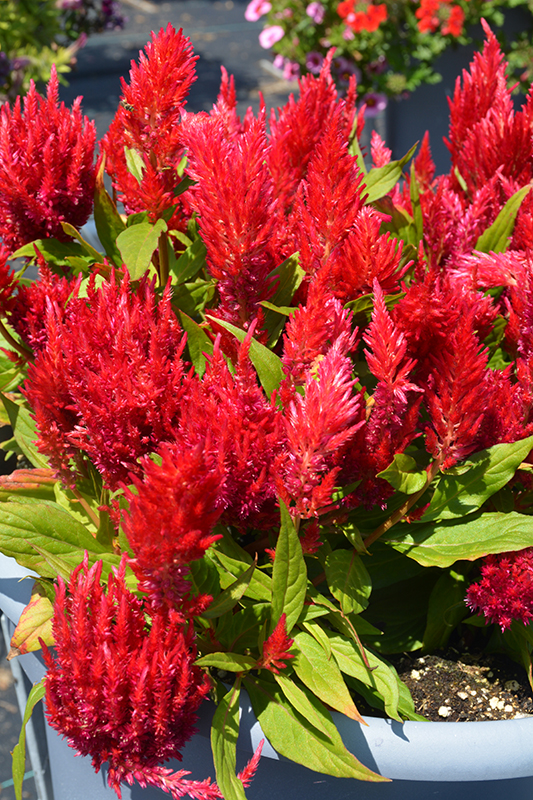 Ice Cream Cherry Celosia is a fine choice for the garden, but it is also a good selection for planting in outdoor containers and hanging baskets. It is often used as a 'filler' in the 'spiller-thriller-filler' container combination, providing a mass of flowers against which the larger thriller plants stand out. Note that when growing plants in outdoor containers and baskets, they may require more frequent waterings than they would in the yard or garden.