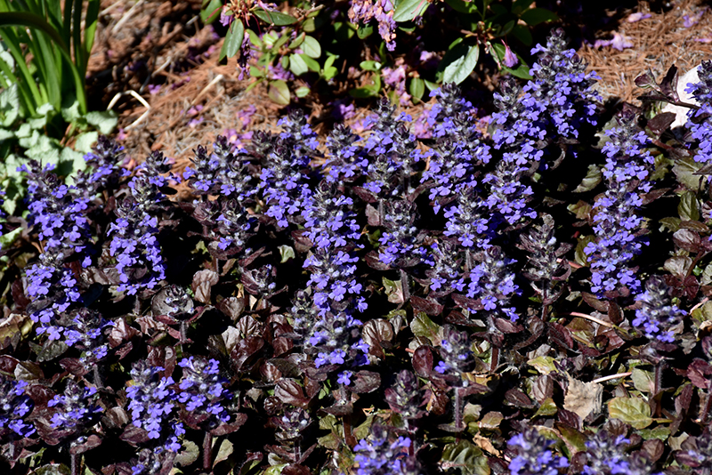 Black Scallop Bugleweed will grow to be about 8 inches tall at maturity, with a spread of 14 inches. Its foliage tends to remain low and dense right to the ground. It grows at a medium rate, and under ideal conditions can be expected to live for approximately 10 years. As an evegreen perennial, this plant will typically keep its form and foliage year-round.