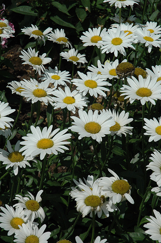 An outstanding shasta daisy producing stunning white blooms with golden centers; a beautiful addition to the garden when massed; blooms throughout the summer