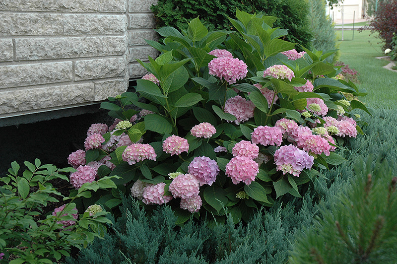Endless Summer® The Original Hydrangea features bold balls of hot pink flowers with blue overtones at the ends of the branches from early summer to early fall. The flowers are excellent for cutting. It has forest green deciduous foliage. The glossy pointy leaves do not develop any appreciable fall colour.