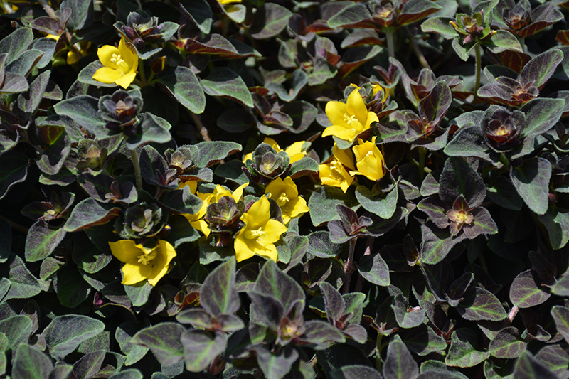 A vigorous and pervasive groundcover, yet not overly aggressive, featuring very showy yellow flowers all summer long held over a low carpet of interesting plum and green colored leaves; almost indestructible; also a great cascading plant on garden walls