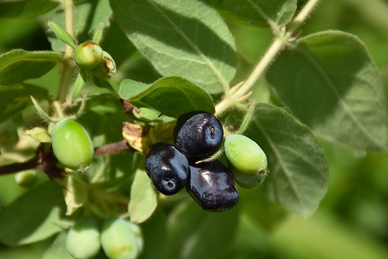Indigo Gem Honeyberry is a medium-sized shrub that is commonly grown for its edible qualities, although it does have ornamental merits as well. It produces blue round berries which are usually ready for picking from late spring to early summer. The berries have a sweet taste.