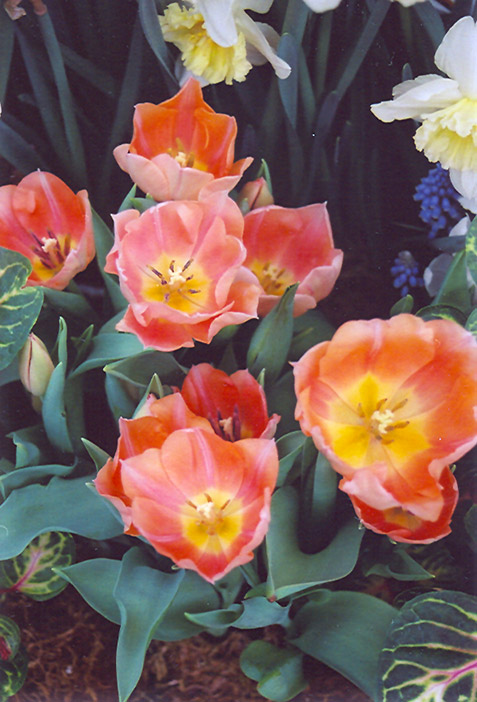 Apricot Beauty Tulip will grow to be about 10 inches tall at maturity extending to 16 inches tall with the flowers, with a spread of 8 inches. When grown in masses or used as a bedding plant, individual plants should be spaced approximately 4 inches apart. It grows at a medium rate, and under ideal conditions can be expected to live for approximately 10 years. As an herbaceous perennial, this plant will usually die back to the crown each winter, and will regrow from the base each spring. Be careful not to disturb the crown in late winter when it may not be readily seen! As this plant tends to go dormant in summer, it is best interplanted with late-season bloomers to hide the dying foliage.