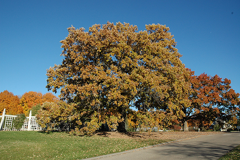 The hardiest of the oaks, this shade tree is singularly majestic, with its picturesque wide-spreading habit of growth and gnarled branches, best for larger landscapes; extremely tough and adaptable but relatively slow growing, plant for future generations