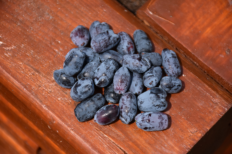 An interesting hardy shrub with clean foliage and delicious bluish-purple berries that are edible; dense and fairly compact growing habit; selected for larger fruit and high yeilds, must have another honeyberry variety for cross pollination