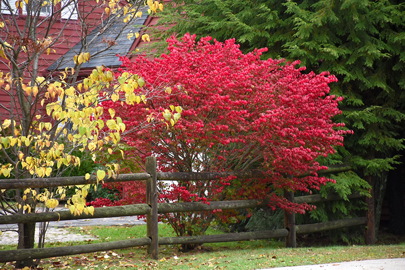 A spectacular and compact garden shrub which turns a luminous florescent pink color in fall, very showy; a shapely mounded growth habit and interesting corky wings on the branches; a very popular and adaptable landscape plant